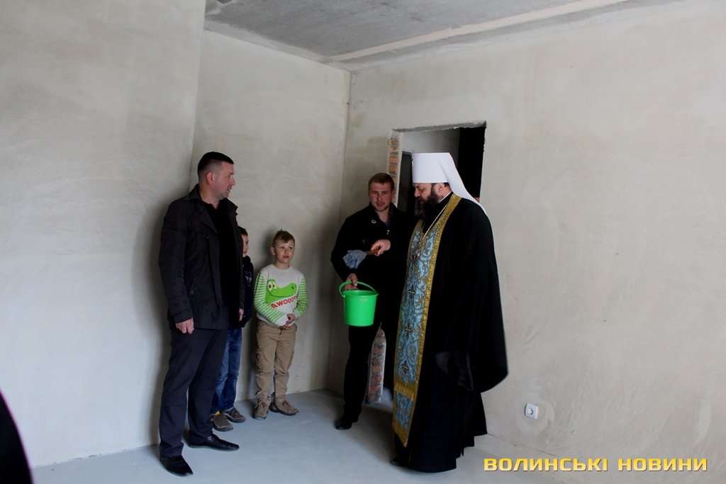 Помешкання, які отримали лучани, розташовані у 55-ому мікрорайоні в новобудові на вулиці Дмитра Іващенка. Сьогодні ці оселі й освятив владика Михаїл.Наступні 8 квартир будуть виділені по мірі будівництва багатоповерхівок у новому житловому кварталі на Конякіна-Гордіюк. Хто отримає ключі – вирішать громадські організації, які підписалися під Меморандумом.