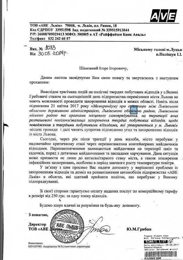 "Зі свого боку гарантуємо оплату наданих послуг по комерційному тарифу в розмірі від 250 грн за одну тонну відходів", - йдеться у листі.