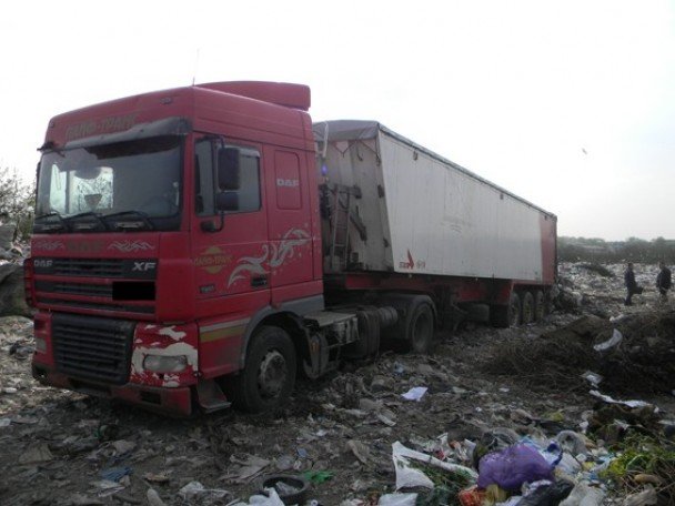 На місці події правоохоронці застали автомобіль "DAF" із напівпричепом під час вивантаження відходів.