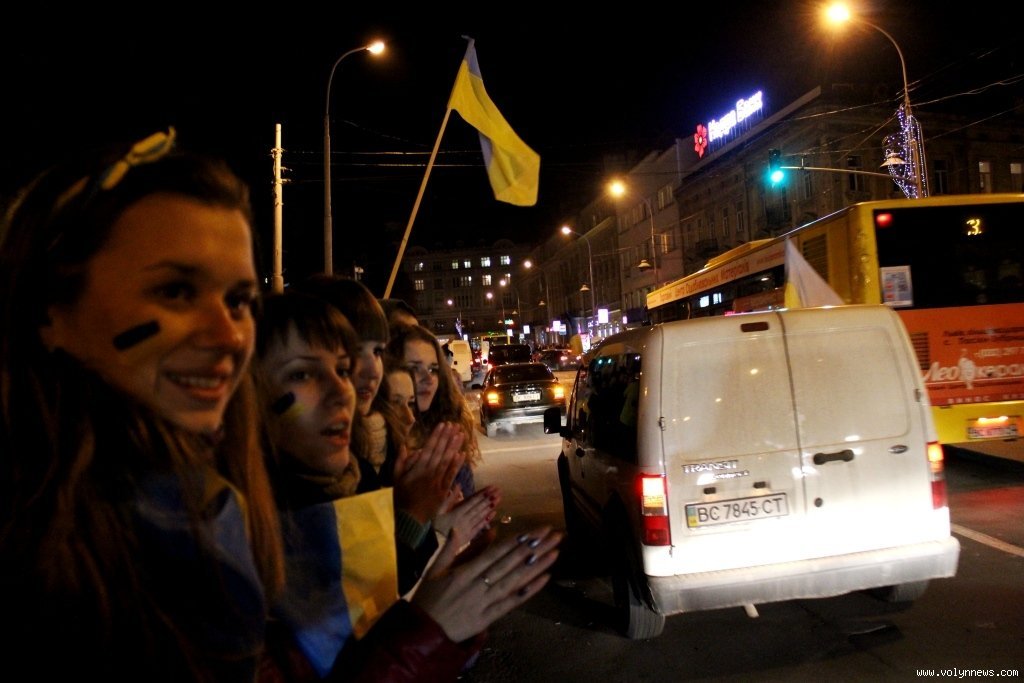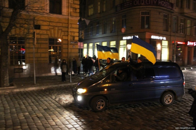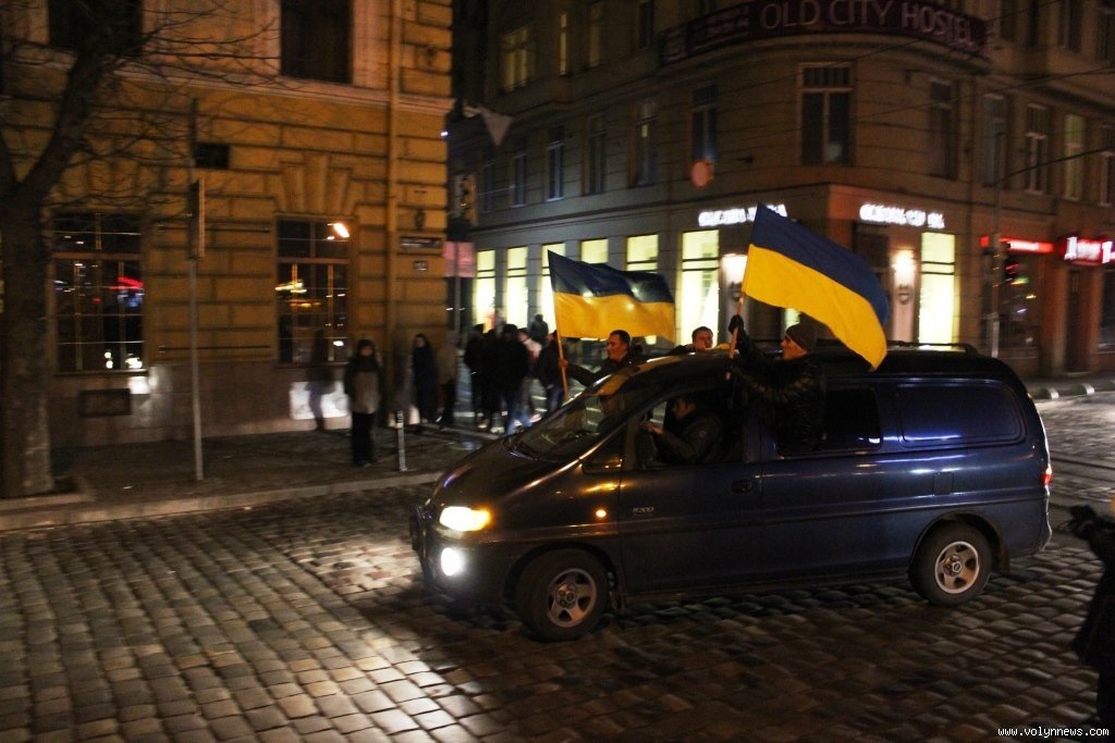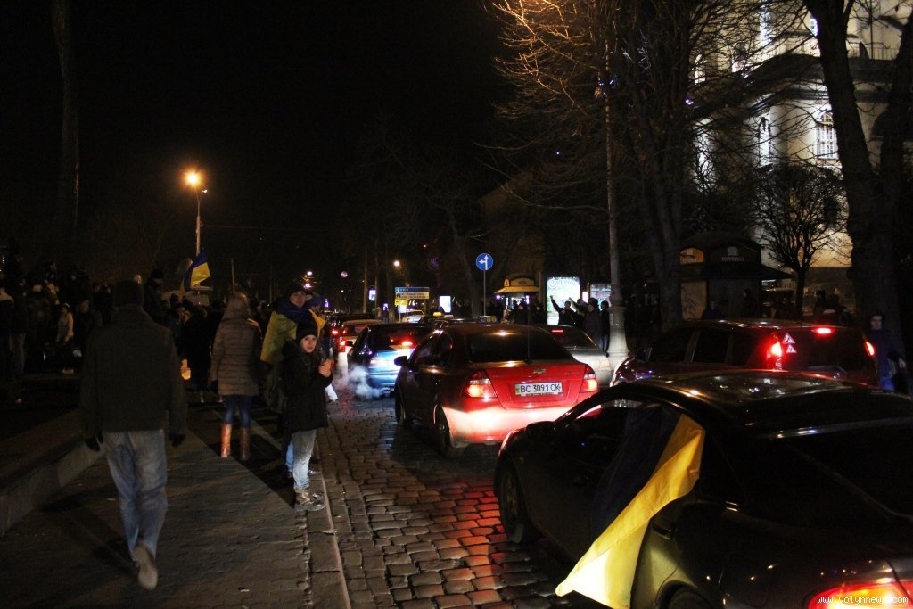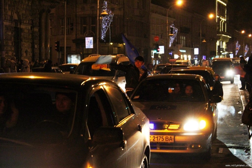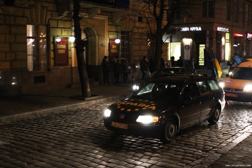 Надвечір відбувся автопробіг на підтримку євроінтеграції, у якому взяли участь десятки автівок з українською символікою та прапорами ЄС, що проїхали проспектом Свободи. Учасники Євромайдану вітали їх оплесками, дехто з водіїв зупинявся, щоб потиснути руку мітингувальникам.
