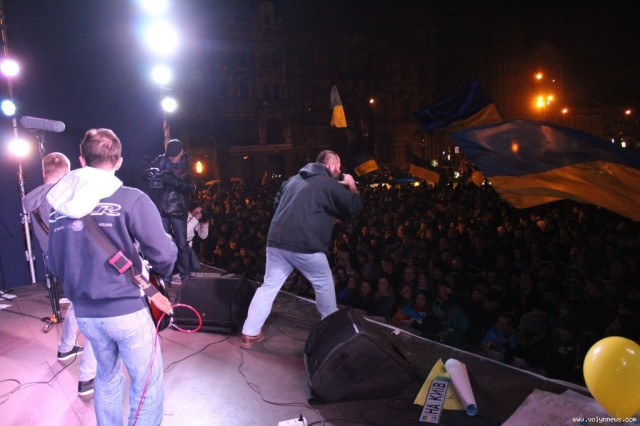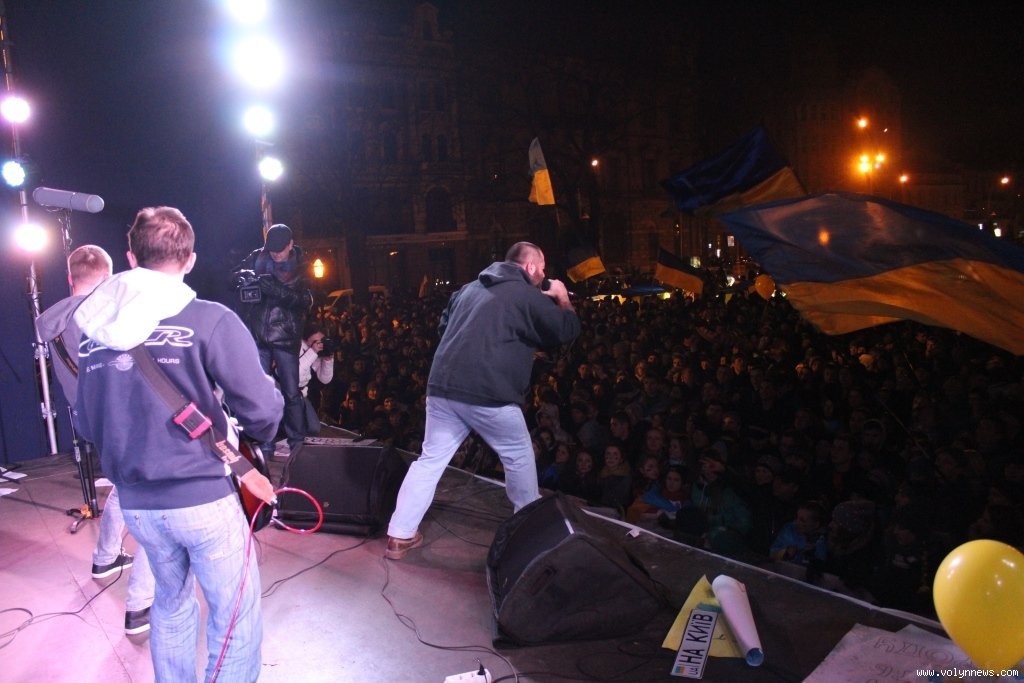 «Я дуже прошу, щоб студентський протест, від якого я просто в захваті, не перетворився з часом на звичайну дискотеку. Хлопці, я в вас вірю, разом ми зможемо. Ми зможемо тих політиків нагнути, як вони досі нагинали нас. Головне запам’ятайте, ми – народ, вони – бидло», - звернувся до публіки Дмитро Тернущак.