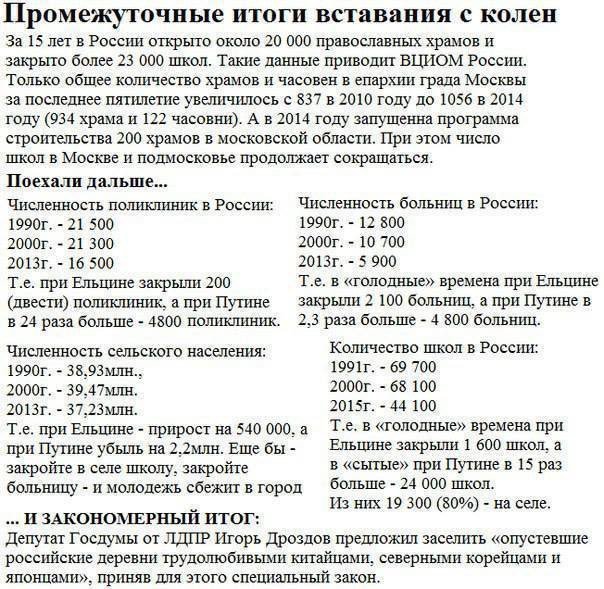 Зокрема, там ідеться про те, що за останні 20 років у Росії відкрито 20 000 православних храмів і закрито 23 000 шкіл.