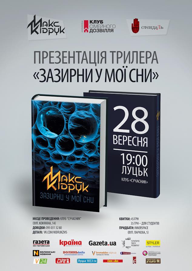 Презентація нового роману-трилера Макса Кідрука «Зазирни у мої сни» відбудеться 28 вересня о 19:00 у клубі «Сучасник» (вулиця Конякіна, 14).