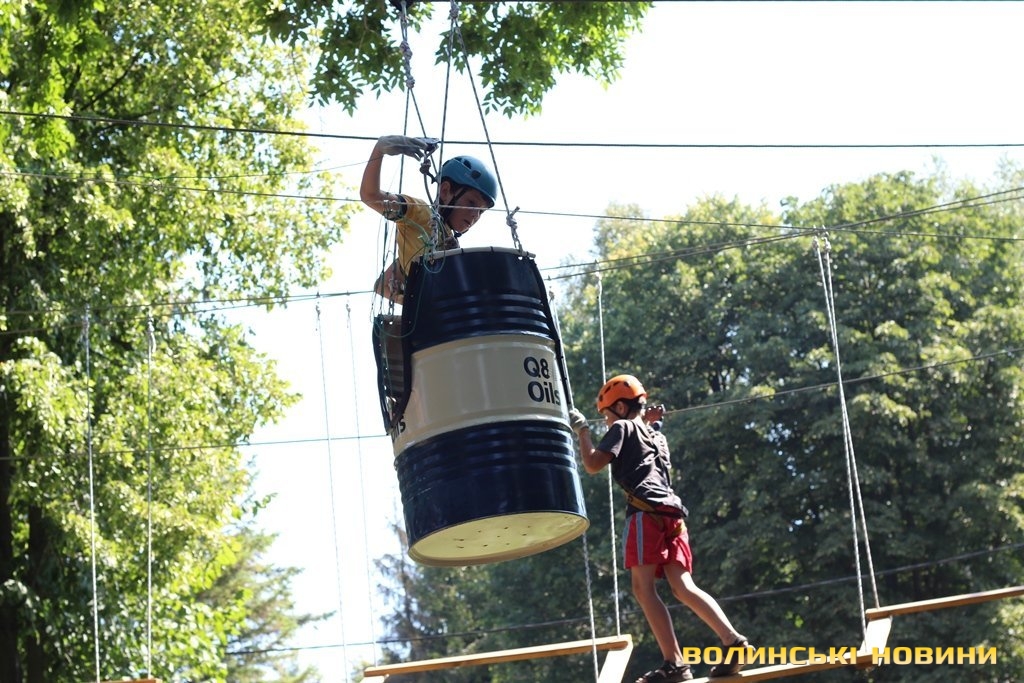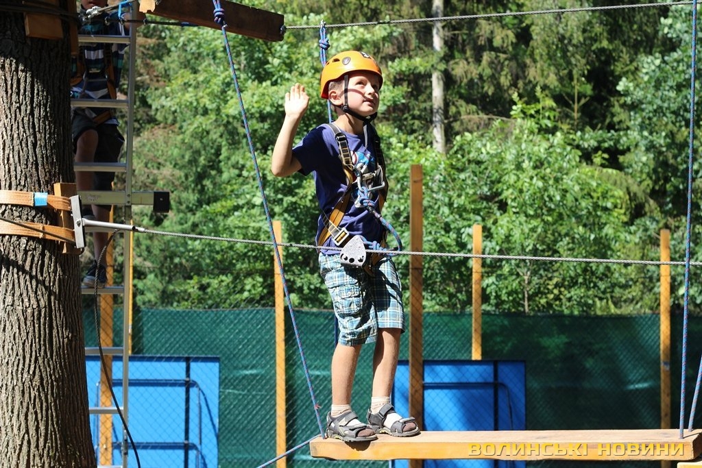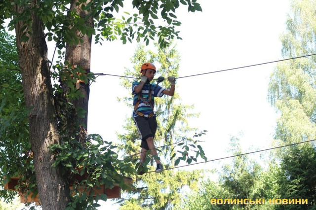 Дітей із сімей, що опинилися у складній життєвій ситуації, розважали під час канатного тренування для дітей кризових категорій на екологічно-розважальному об’єкті «Екологічна стежка здоров’я», що у Центральному парку культури та відпочинку імені Лесі Українки.