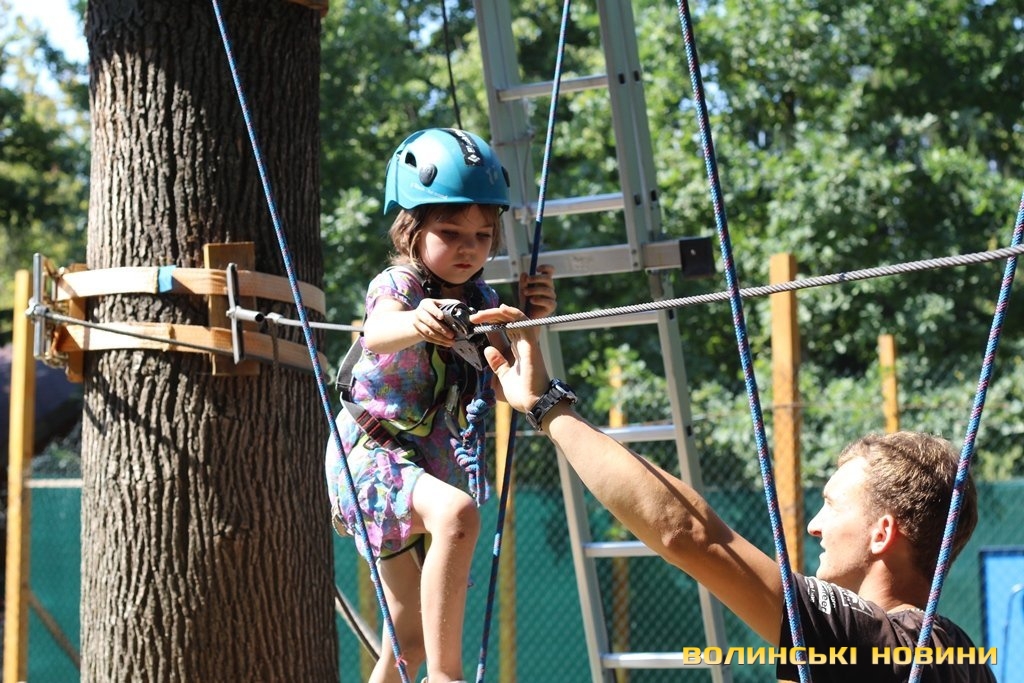 Таку незвичайну, утім дуже корисну для фізичного здоров’я підростаючого покоління справу, яку сумісно організували працівники Луцького міського центру соціальних служб для сім'ї, дітей та молоді та КП «Парки та сквери міста Луцька». Не варто забувати й за самих творців «підвісного дива». Зокрема, директор екологічно-розважального об’єкту «Екологічна стежка здоров’я» Олександр Оришко розповів Інформаційному агентству Волинські Новини, що працівники так званого атракціону завжди охоче долучаються до благодійництва, а подібні заходи здійснюють уже не вперше. «До нас частенько звертаються із проханням провести різноманітні акції для дітей із кризових категорій населення. Саме таким методом малюкам можна показати, які є альтернативи відпочинку, і чим можна зайнятися, окрім посиденьок за комп’ютерами. Не усі мають можливість відвідувати спортивні секції. Акція абсолютно безкоштовна, більше того, ми займаємось із дітьми з різних верств населення з величезним задоволенням», - підкреслив Олександр.