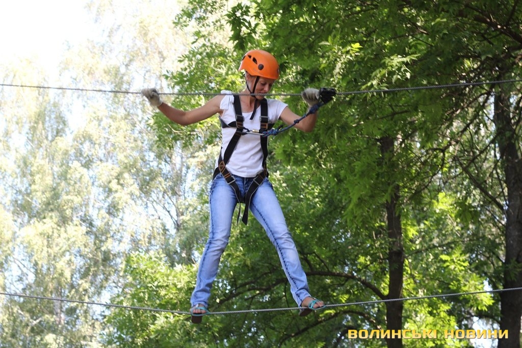 Як пояснила провідний спеціаліст відділу соціальної роботи Центру соціальних служб для сім’ї, дітей та молоді Тамара Бондарук потренуватися та гарно провести час на канатній доріжці прийшли вихованці сімей, які опинились в кризових життєвих обставинах. Вікові категорії юних «альпіністів» абсолютно різні. Пройтися канатною доріжкою запропонували й малятам від 5 років, й підліткам до 15. «Хлопці проводитимуть для дітей навчання, а дітки будуть таким чином відпочивати під час канікул. Вони матимуть чим зайнятися та доцільно проведуть власне дозвілля. Хочемо залучити дітей до екології, аби вони не гуляли саменькі, а були задіяні до гарного літнього відпочинку», - каже пані Тамара.