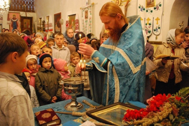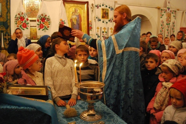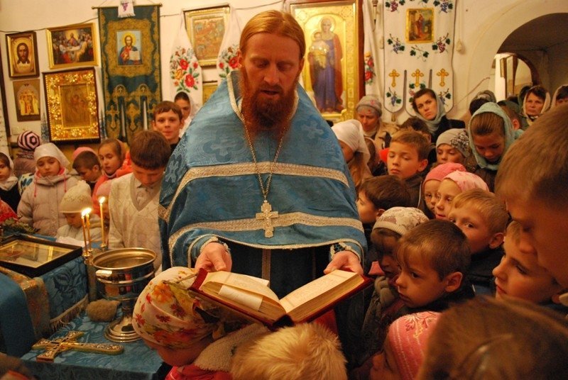 Керівник недільної школи ієромонах Ілія Вишневський нагадав присутнім історію свята Покрови Пресвятої Богородиці.