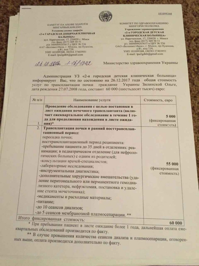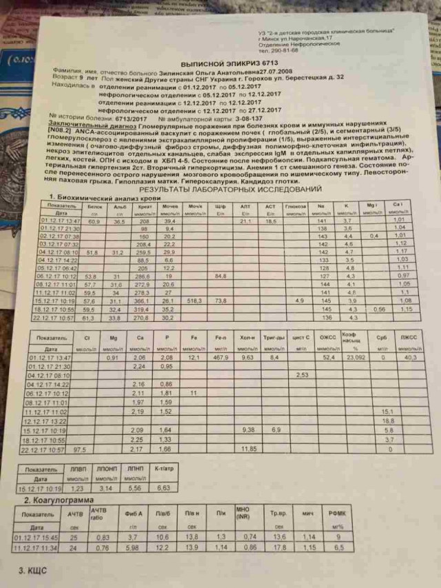 В липні, коли у крові дитини почали підніматися рівень креатиніну та сечі, ШОЕ було вже 60. В Києві дівчинка опинилася в кінці серпня, де стало ясно що необхідна пересадка нирки.