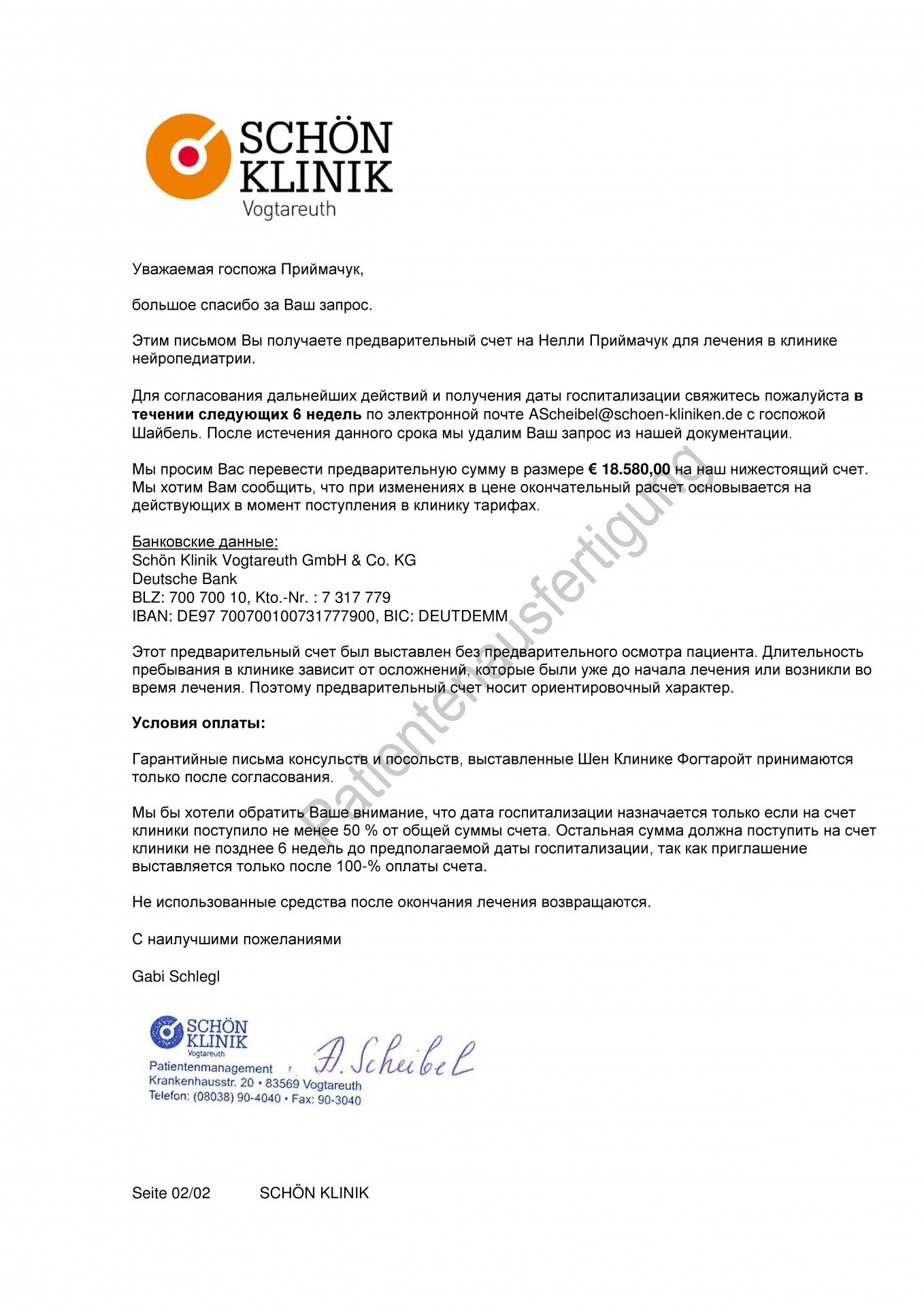 Наразі дитині потрібне лікування закордоном. Прийняти Неллі погодилася німецька клініка «Vogtareuth», виставивши рахунок на 18580 євро.