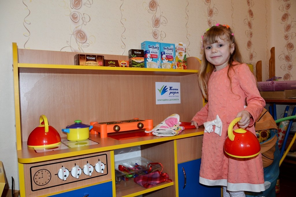 Нові ліжка зробили дитячий сон солодшим, а ігрові стінки – перебування дітлахів у дитсадку цікавішим та веселішим. Тепер в ігровій кімнаті стоїть дитяча кухня, де малюки, імітуючи дорослих, «куховарять», а потім чаюють за новеньким столиком. Є тут іграшкові лікарня та магазин. Зі з’явою нових розвивальних стінок діти мають змогу гратися в рольові ігри. Юні продавці обслуговують ровесників-покупців, а ті, своєю чергою, розраховуються іграшковими грошима.