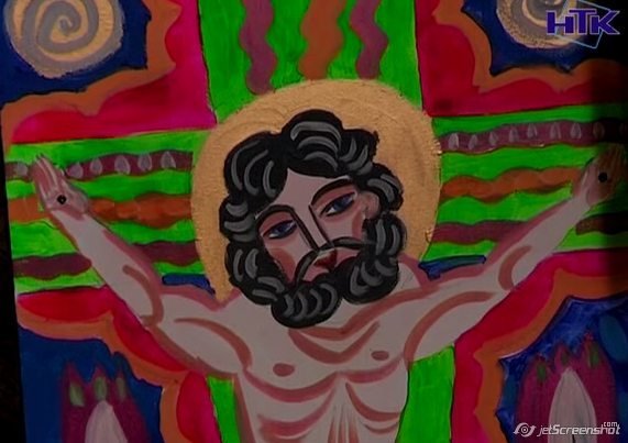 29-річний Юрій показує ікону, яку він намалював у Шешорах і зізнається, що пензлик для малювання тримав в руках ще в школі. "Процес - дуже приємний, бо навіть якщо глянути на ці картини, які ми малювали, - ніби нічого особливого, точних деталей немає, але воно гарно виходить", - ділиться враженнями від процесу боєць АТО.