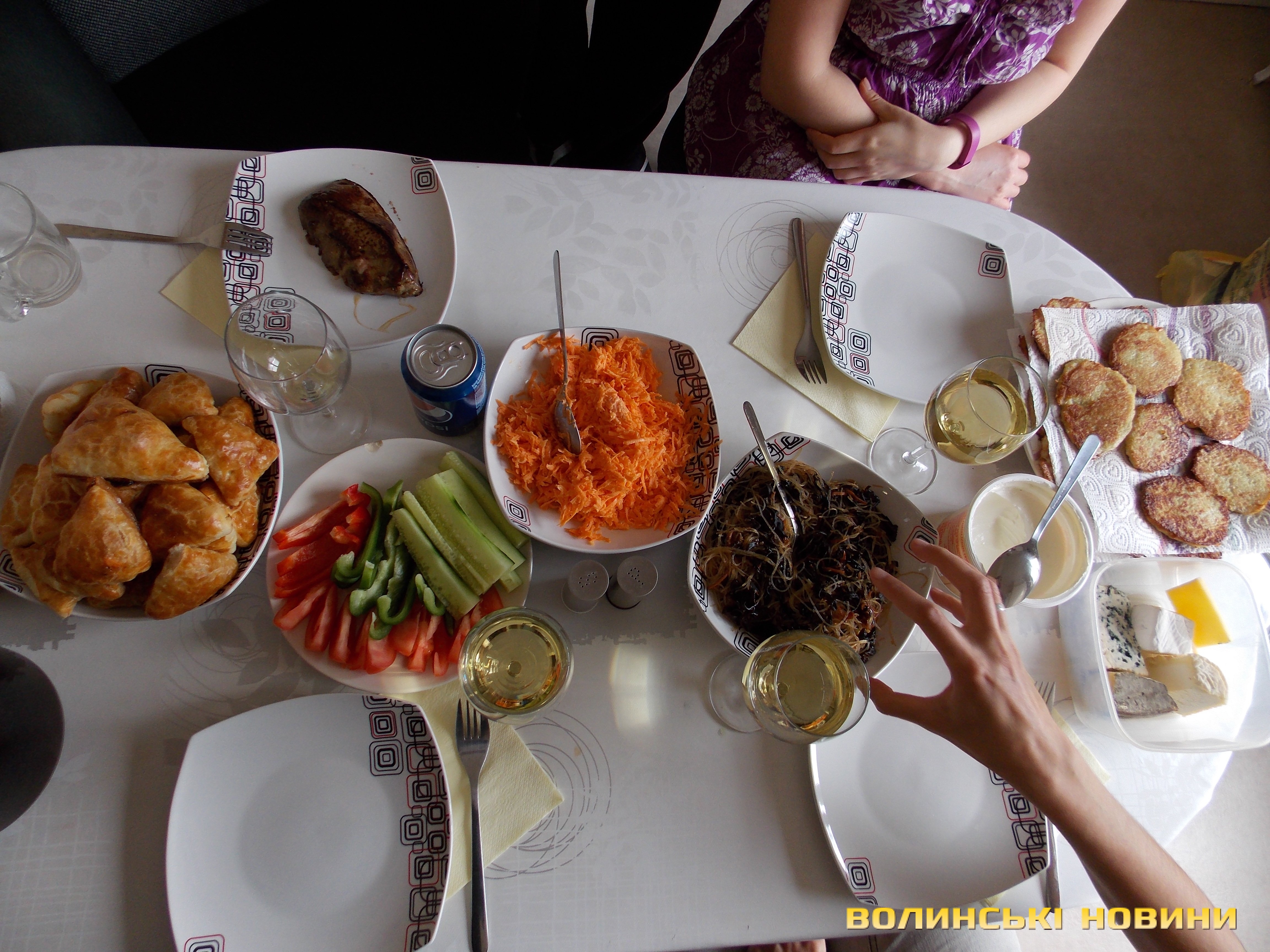 У Віші ми святкували Олениних 30 років. Їли українські деруни, узбецьку самсу, корейську лапшу й італійський тірамісу і пили чілійське вино. Космополітичне було святкування! І не кожному випадає шанс відсвяткувати ювілей у Франції, чи не так?Святковий стіл. Самса, деруни, корейська лапша, тірамісу