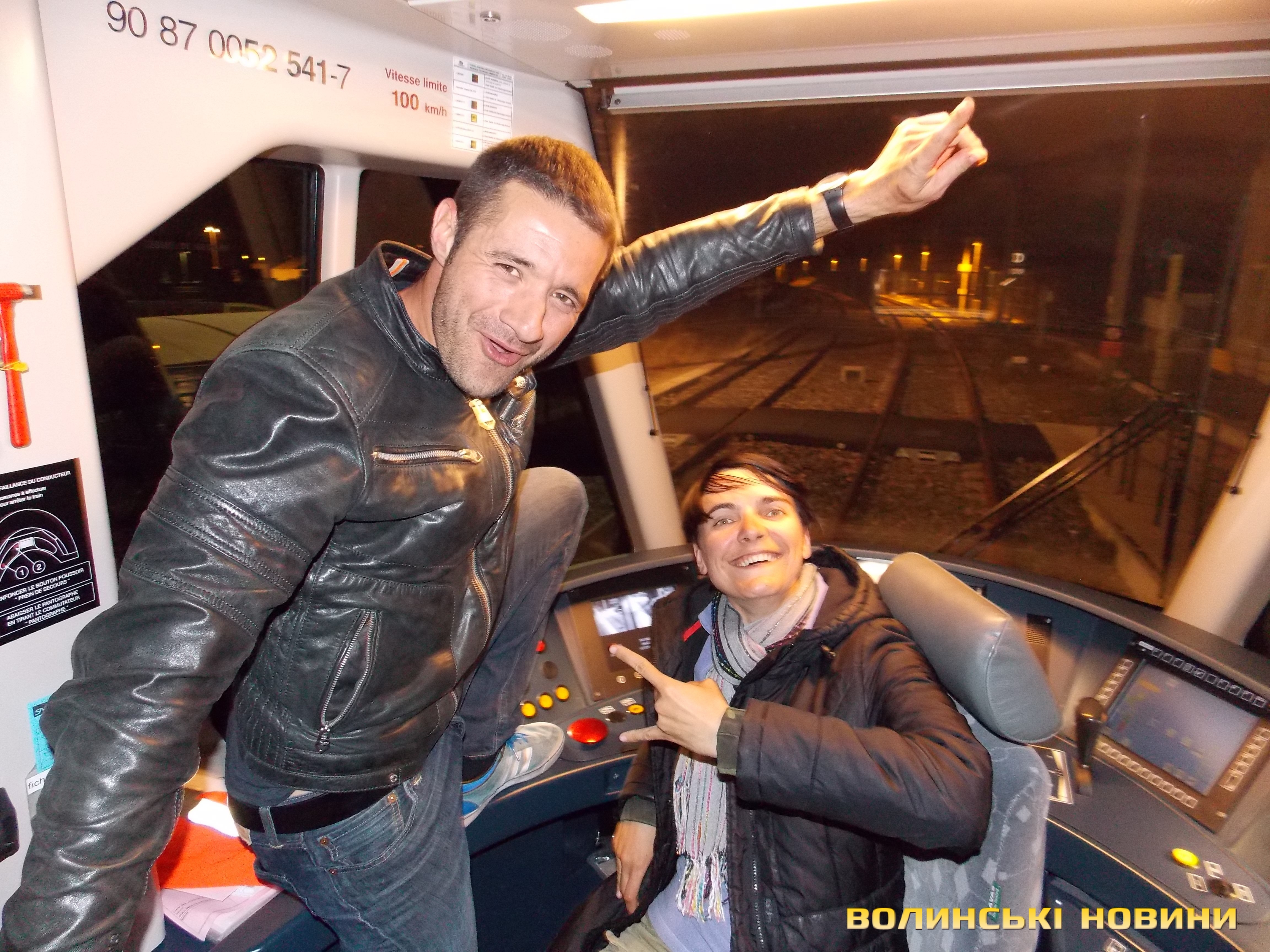 - Ліон. Тут Олена водила потяг. Справжній! По-справжньому! Наш друг Бенжамін виявився водієм приміського потяга. Ми просто кинули монетку, водити випало Олені. І вона впоралася. Жоден потяг і жоден пасажир не постраждали.