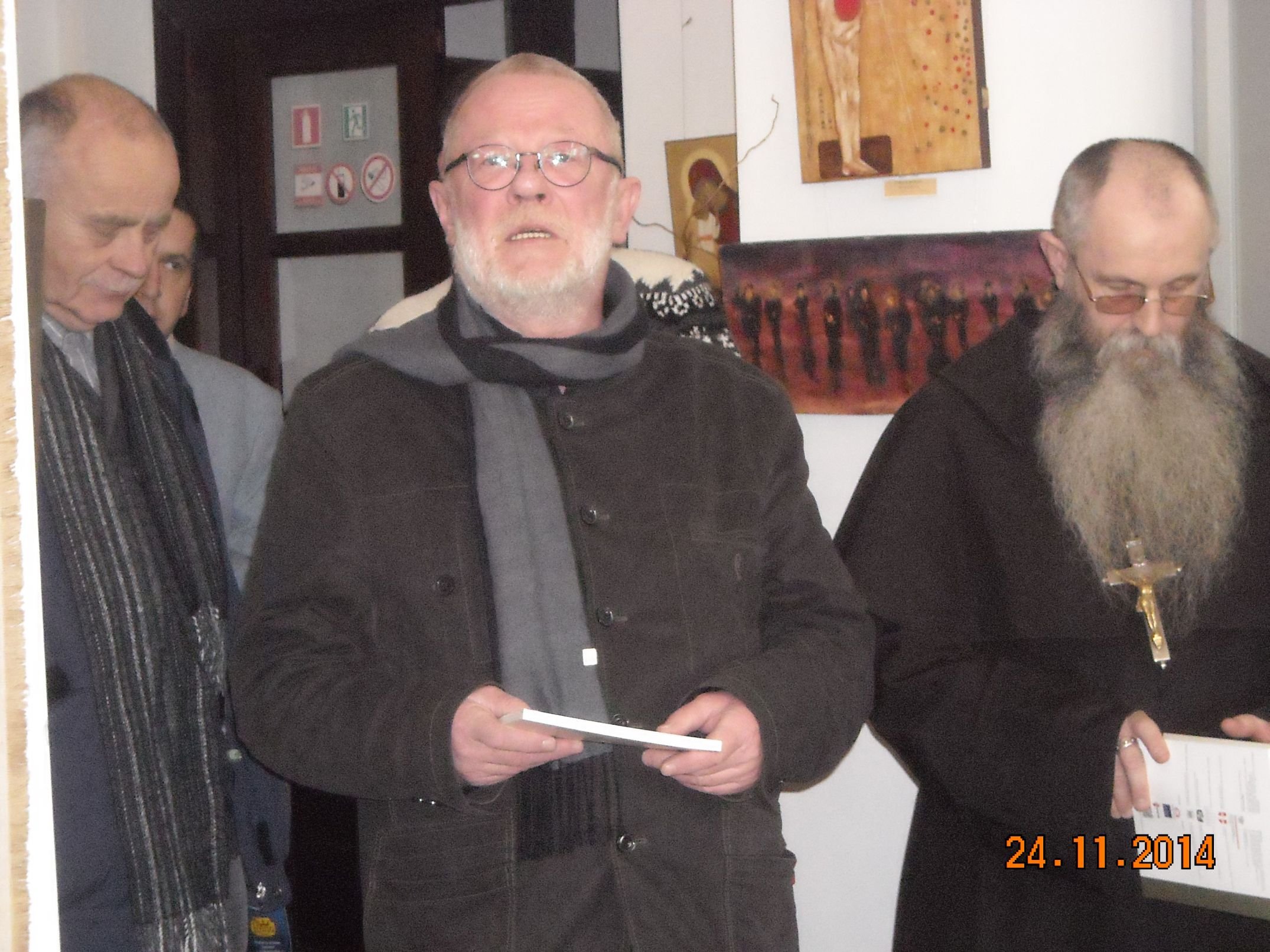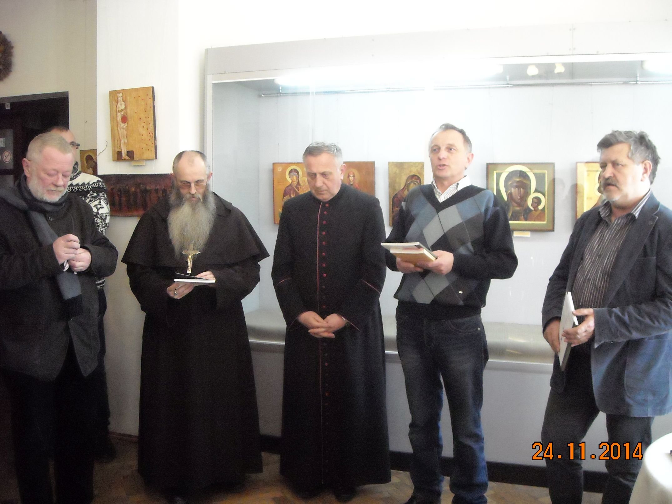 Відкриття виставки розпочалася з молитви, бо як наголосив отець Ян Бурас, ми усі і українці, і поляки кожен день маємо розпочинати з молитви за мир і за тих, хто загинув обороняючи Україну.
