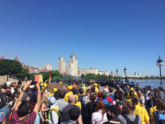 Як повідомлялося, сьогодні у Києві представники ЛГБТ-спільноти проводили "Марш рівності" на Оболонській набережній. Попри заходи безпеки, на акцію прорвалися її противники, які, зокрема, кидали в учасників маршу петарди та димові шашки.