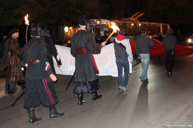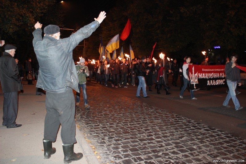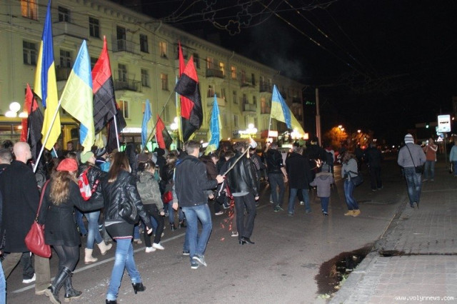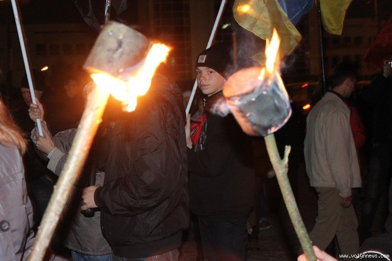 Майже 100 учасників зібрав марш присвячений 70-річчю створення УПА. Люди із запаленими смолоскипами пройшлися центральними вулицями Луцька.