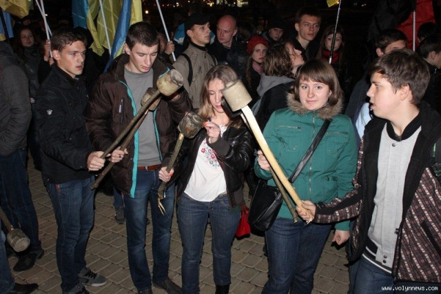 Розгорнувши червоно-чорні та державні прапори, та, підпаливши саморобні смолоскипи, вони рушили за маршрутом, який пролягав проспектом Волі, вулицею Лесі України, вулицею Братковського, а звідти до стін колишньої Луцької тюрми.