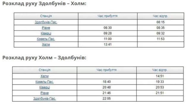 Маршрут поїзда «Ковель-Холм» планують продовжити з 4 серпня. Відтак, рейковий автобус відправлятиметься зі Здолбунова, а також робитиме зупинку в Рівному.