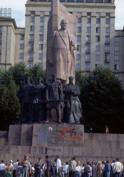 Такою виглядала площа у 1990-1991 роках під час революціїї на граніті і до демонтажу пам'ятника Леніну: