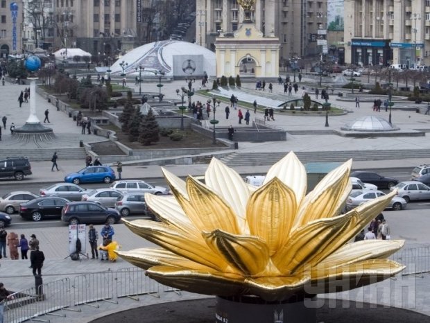 Встановлення скульпутри китайського митця на Майдані