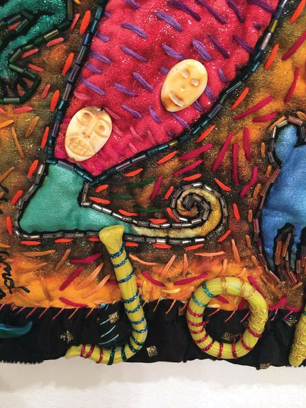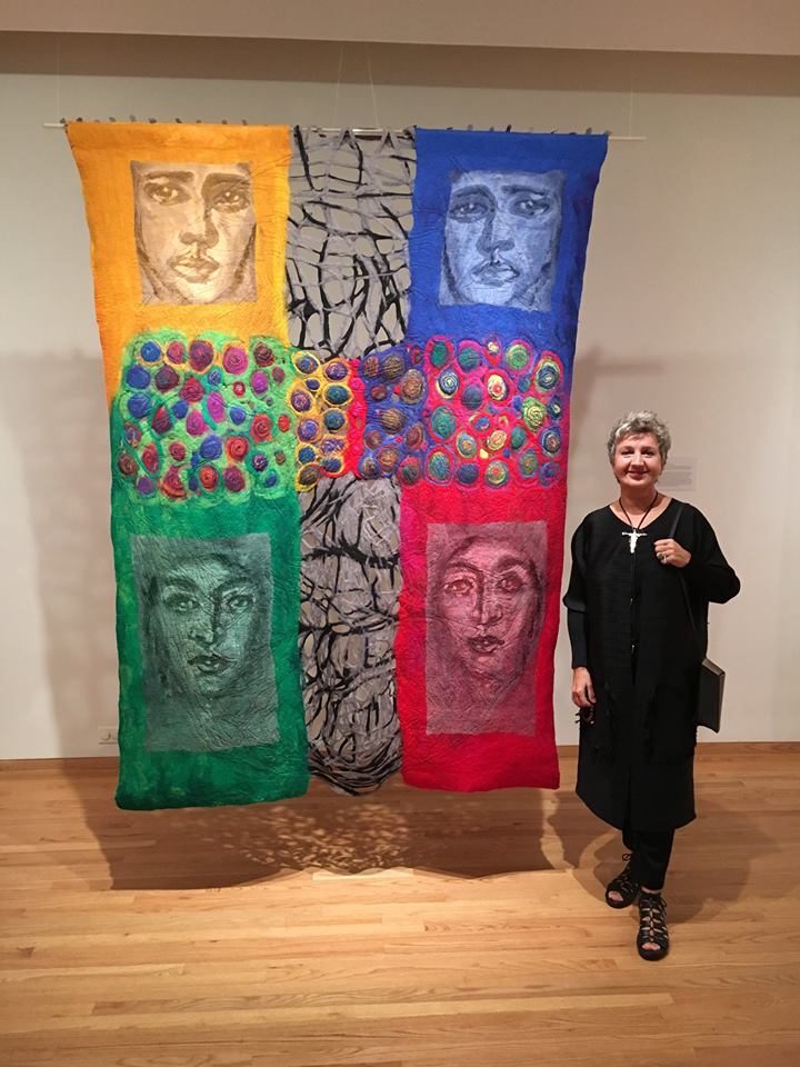 Уперше її роботи я побачила в 2017 році у Львові на виставці «Повторний цикл» і була вражена, не здогадуючись, що текстиль може стати високим мистецтвом. Дивували кольори, форми, а найбільше – зміст, яким авторка наповнювала свої роботи, шукаючи витоки в стародавній трипільській культурі. Надзвичайно зворушливою та емоційною видалась і розповідь Валентини Роєнко-Сімпсон про життя та історію творчості.