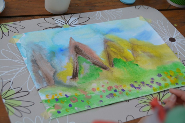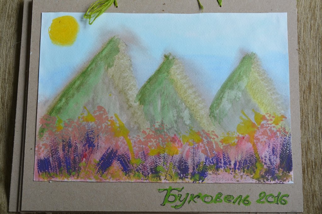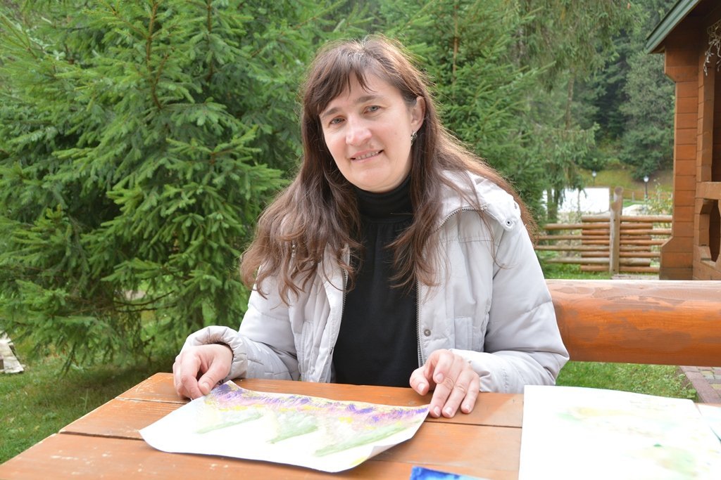 Кожен рух пензлем дітки робили старанно, зосереджено. У одних виходили сонячні картини, в інших – похмурі. Все через різку зміну погоди, яка кожному видавалася такою різною. Допомагали дітям створювати картини і батьки. Олена Островська спочатку малювала із п’ятирічною донечкою Марійкою, але емоційний стан жінки надихнув зробити власну картину на згадку про Карпати.«Моя картина – це вилив енергії. Я намагалася на папері передати те, чим зараз живе душа. Хотіла зафіксувати момент нашого перебування у Карпатах. Ми ще так далеко не їздили. Тут просто неймовірна краса, – ділиться враженнями Олена Островська. – Природа вплинула і на Марійку. Вона погано говорить, але завдяки таким краєвидам та новій місцевості її мова стає кращою».Оздоровлення без процедур