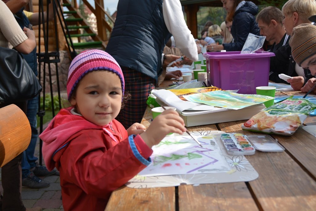 Вже на другий день відпочинку діти та їхні батьки ділилися враженнями. Чисте гірське повітря та мальовничі краєвиди надихнули до створення власних картин. Діти разом із художницею Ольгою Грицюк на папері відтворювали красу Карпат.На майстер-класі зібралося більше 40 осіб. Серед них - і Анна Фльорко. Навчатися чомусь новому – життєве кредо дівчини. Вдома вона опановує акторську майстерність, вже грала у чотирьох виставах. Дівчина ніколи не створювала картини, але знає, що немає нічого неможливого – головне цього хотіти. Перебування у Буковелі надихнуло дівчину до малювання.