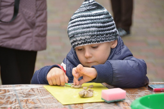 За роботою Анастасії стежить її мама Надія Оласюк. Жінка каже, що донька вперше має справу з глиною, та з виразу обличчя видно – така творчість їй до вподоби.«Коли бачу, що донька усміхається – в моєму серці тепло. Такі заняття дуже потрібні. Діти отримують моральне задоволення від спілкування. Від контакту з глиною відчувають теплоту. Тішить, що у свої вироби діти вкладають душу», – розповідає пані Надія.