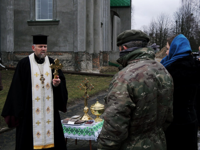 На завершення отець Стефан передав представнику бригади пам’ятні іконки для командира, бійців і сказав: «Сподіваємося, що з Божою допомогою мир, порозуміння та процвітання повернуться на українську землю».