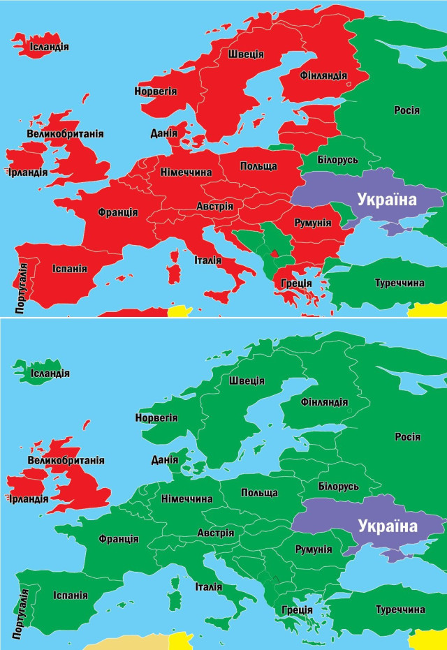 Зелений колір: в’їзд до країн дозволено за наявності шенгенської візи, або встановлено безвізовий режим