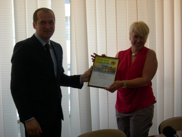 На завершення робочої зустрічі, Міністр вручив керівникам сільськогосподарських підприємств дипломи за участь у XXVII Міжнародній агропромисловій виставці «АГРО-2015».