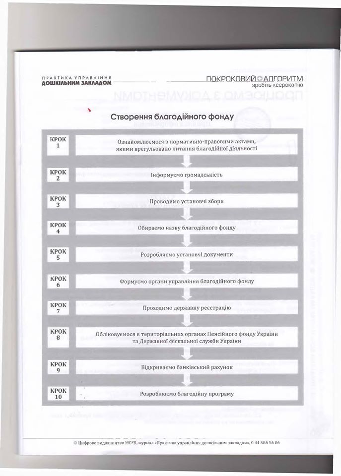 «Потрапив до рук журнал «Практика управління дошкільним закладом» за минулий місяць. І, о диво! Його величність, пресвяте і великоправедне Міністерство освіти хвалить і навіть дуже рекомендує робити те, чого так не хоче луцьке управління освіти. Причому публікація подана під рубрикою «Важливі справи».Тут і детальний покроковий алгоритм створення благодійних організацій при навчальних закладах, і зразок Статуту, і зауваження щодо ймовірних помилок, і рекомендації щодо бухобліку (всього 24 сторінки). Луцька міська рада ще минулого року своїм рішенням теж заявила, що це треба робити. І доручила управлінню освіти провести роз’яснювальну роботу та рекомендувати батькам створення благодійних організацій. Не знаю як «рекомендували», але фонду не було створено жодного.