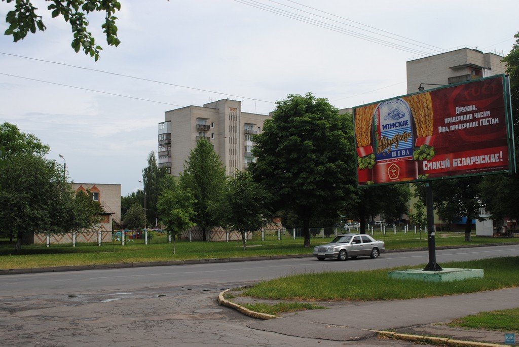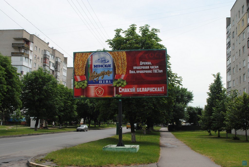 Рулетку брати не довелося – навіть візуально помітно, що рекламний щит із пропагандою “Мінского піва” – значно ближче до садка, ніж 300 метрів.