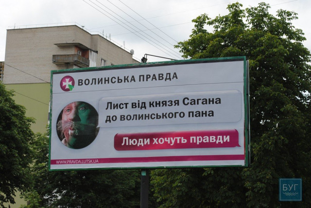 “Мінскає” прибрали. Однак, на його місці з’явився борд, який ображає гідність міського голови Петра Саганюка – “Лист від князя Сагана до волинського пана”.