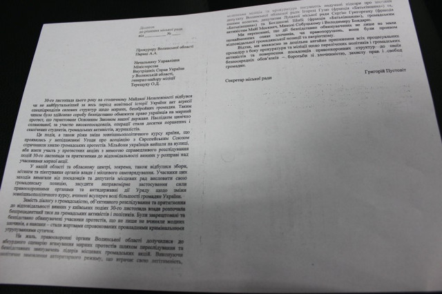 Луцька міська рада звернулася до правоохоронних органів, аби ті припинили процесуальні процедури щодо активістів мітингів. Депутати голосували таємно.