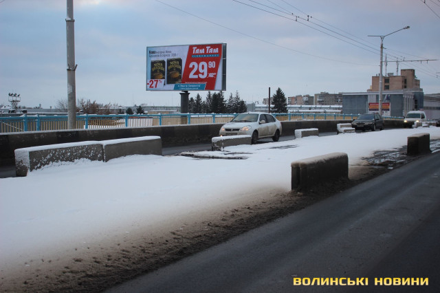 Міст на вулиці Рівненській попри обіцянки чиновників, виправдання підрядників та сніг – далі залишається аварійно-небезпечним. Все, що зробили за тиждень з недоремонтованим мостом - це прибрали будівельне сміття, а от бетонні блоки лишилися на місці. Що ж до асфальту, який за півроку так і не поклали, то міська влада обіцяє лучанам вкласти його на мосту протягом найближчих двох років.