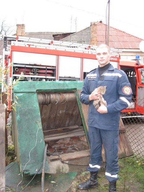 Маладці!Жива істотка буде вдячна до скону.Вважайте,що пожежний державної пожежно-рятувальної частини №7 ТУ МНС у Волинській області Володимир Борисов спас свою реінкарнацію!