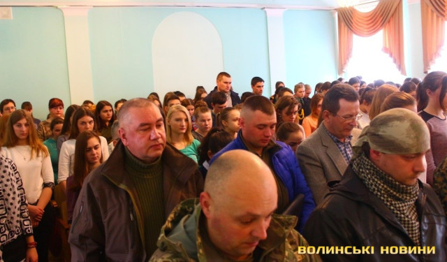В боях за Україну загинули бійці роти Володимир Іщук, Мирослав Столярчук, Сергій Помінкевич, Максим Ляшук, Олександр Сацюк, Віктор Шолуха та Олександр Сивий. Юним лучанам нагадали, що наш моральний обов’язок перед полеглими захисниками України – здійснювати реформи, розвивати державу, тому що Україна повинна бути розвинутою та процвітаючою, щоб кров захисників була пролитою не марно. Пам'ять загиблих вшанували хвилиною мовчання.