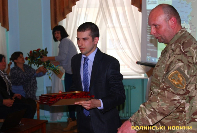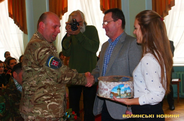 Насамкінець представникам роти «Світязь» вручили подяки Волинського краєзнавчого ліцею та солодкий подарунок від студентів Луцького педагогічного коледжу.
