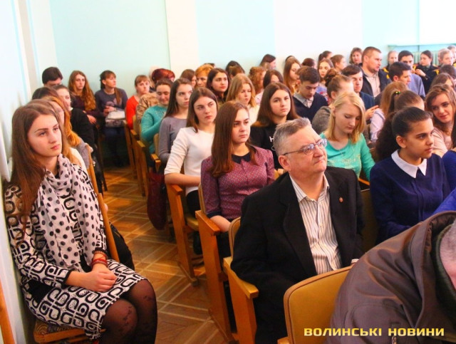 Він закликав юних лучан нарешті поважати себе та обрати до влади українців, тому що, якщо ми самі себе не поважаємо, до нас ніколи не ставитимуться з повагою інші народи.