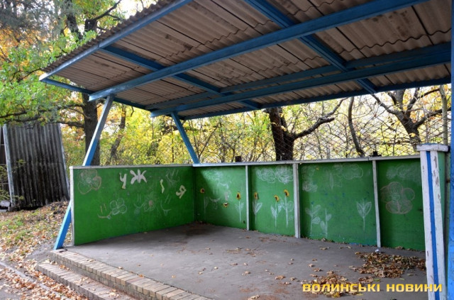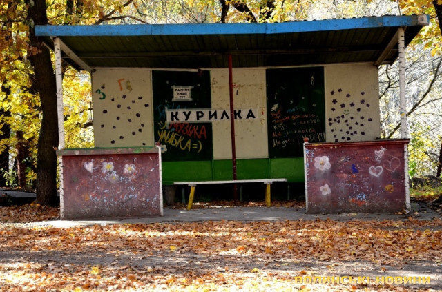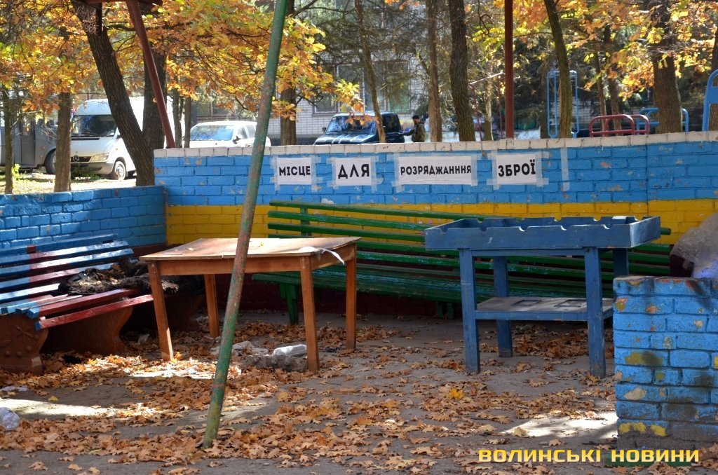 Власне, місце базування ДУКу – колишній літній табір відпочинку, де про його минуле нагадують написи та характерні для таких закладів споруди. На в’їзді – озброєний вартовий, який, запитавши псевдо бійця, котрий везе вантаж допомоги, доповідає про це по рації. Периметр, як застерігають добровольці, – замінований, тож, прогулюватися уздовж огорожі – небезпечно.