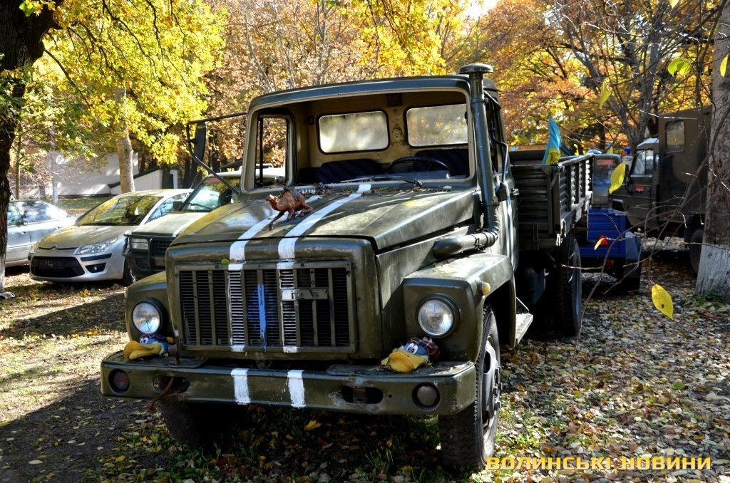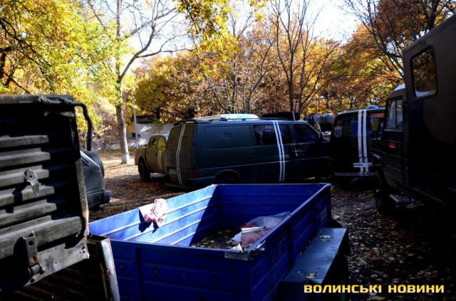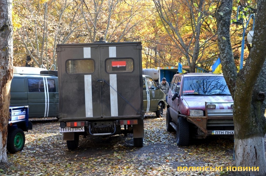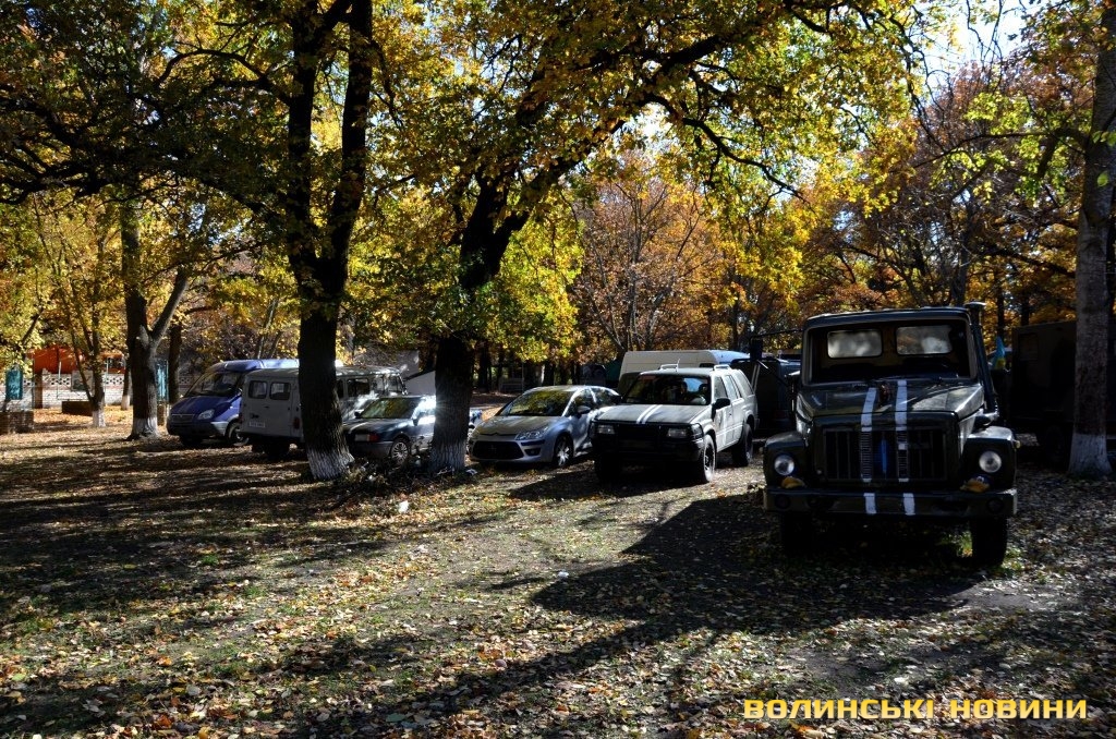 Головна місія нашої поїздки – передача допомоги, на яку очікують добровольці. Це – кевларові шоломи, тактичні окуляри, термобілизна, светри, рукавиці, балаклави, спальні мішки та каремати. Дізнавшись про те, що саме привезли з Волині, до мікроавтобуса починають підходити добровольці, які потребують якісного обмундирування. Їх зацікавили шоломи, светри, що носять офіцери бундесверу. Тактичні окуляри, зі слів бійців – необхідна річ, особливо, коли доводиться їхати на броні. Вони захищають від пилу, диму, осколків та дають змогу побачити у польових умовах те, що складно зауважити незахищеними очима.