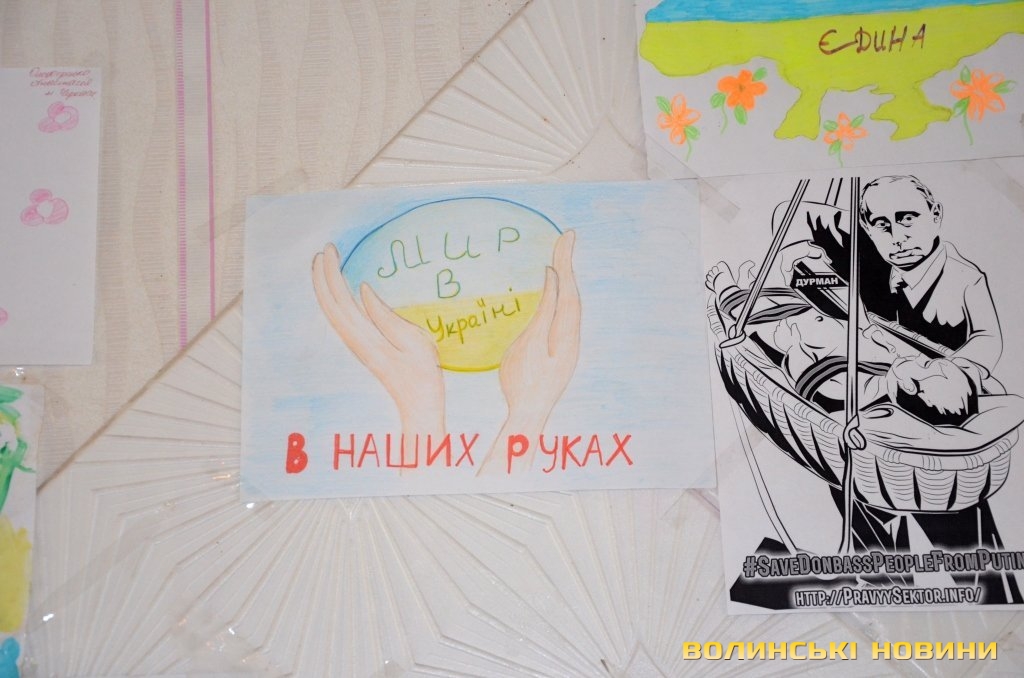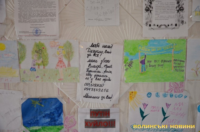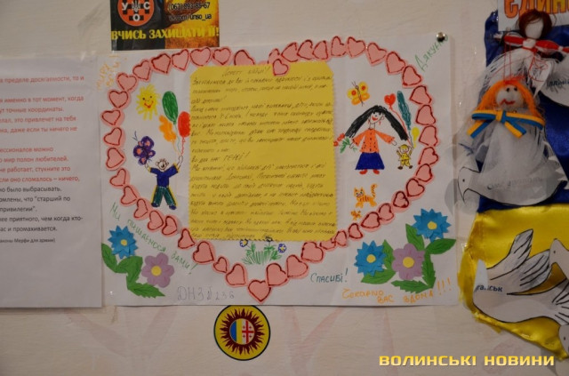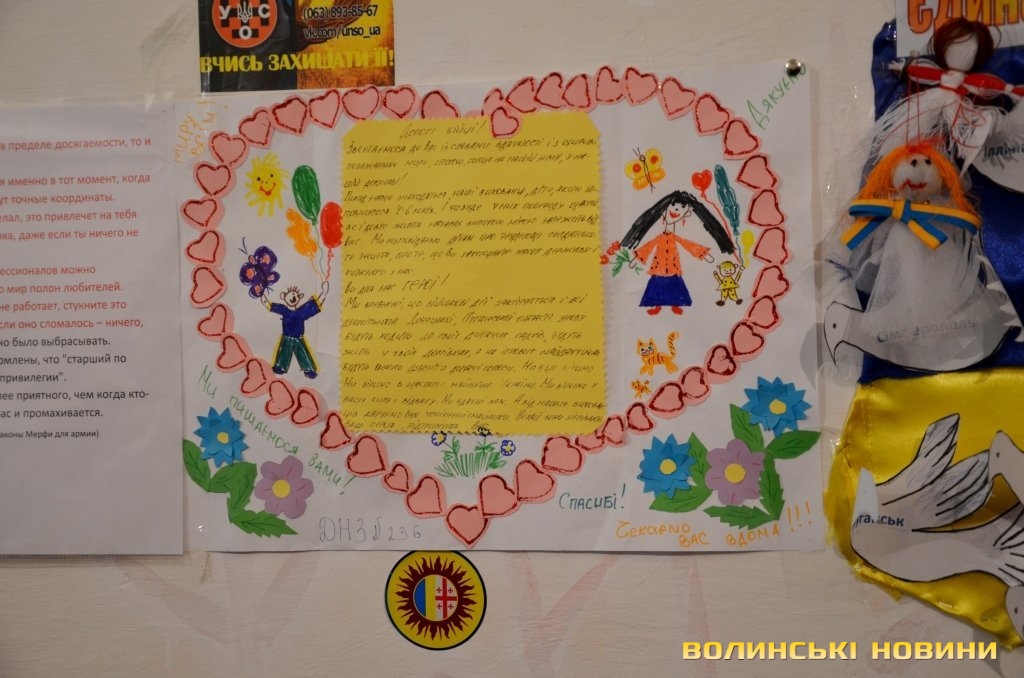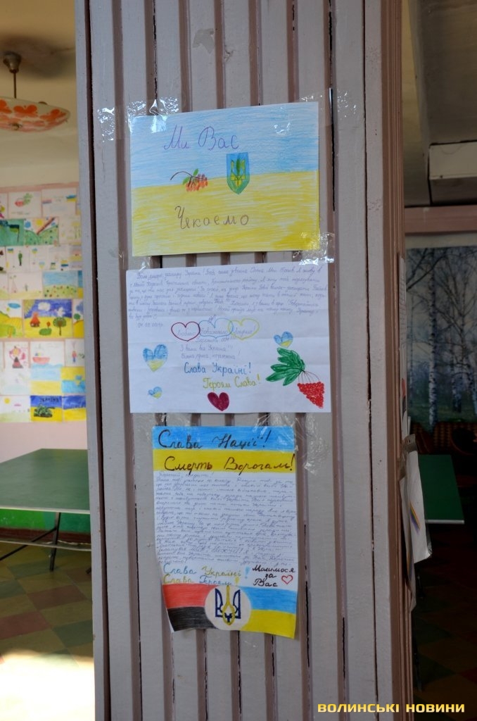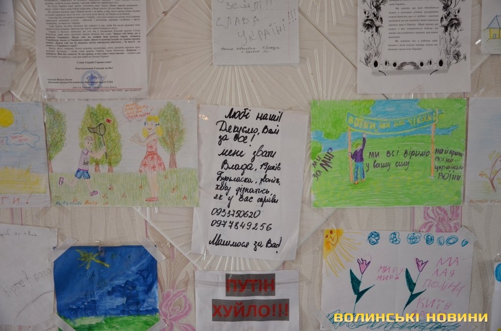 Важливий атрибут усіх будівель на території бази – стіни вкриті дитячими малюнками, що привозять волонтери. За підписами можна зрозуміти, що надходять малюнки маленьких українців як із західних, так і східних регіонів держави. Окремі з них присвячені єдності українського та кримськотатарського народів, багато зображень голуба миру, солдат та побажань повертатися живими. На столі в одному з будинків – видання кишенькового формату, серед яких Новий заповіт, молитовник, довідник «Домедична допомога в умовах бойових дій», а також дитячі листи.
