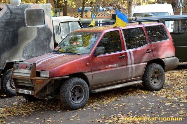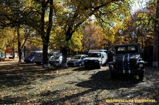 На території бази – чимало автівок, більшість номерних знаків яких заклеєна звичними для цього підрозділу наліпками «ПТН ПНХ». В автопарку батальйону – подарунки волонтерів, вживані іноземні авто, квадроцикли, а також броньовані автомобілі. Зауважуємо і металеві сітки, які слугуватимуть протикумулятивними екранами для бойових машин. Як розповідають добровольці, шлях від місця базування до селища Піски (населеного пункту, що розташований найближче до Донецького аеропорту) прострілюють ворожі снайпери, до того ж, є вірогідність потрапити під обстріл артилерії.