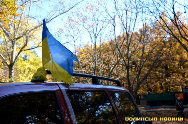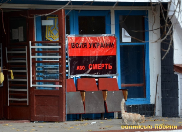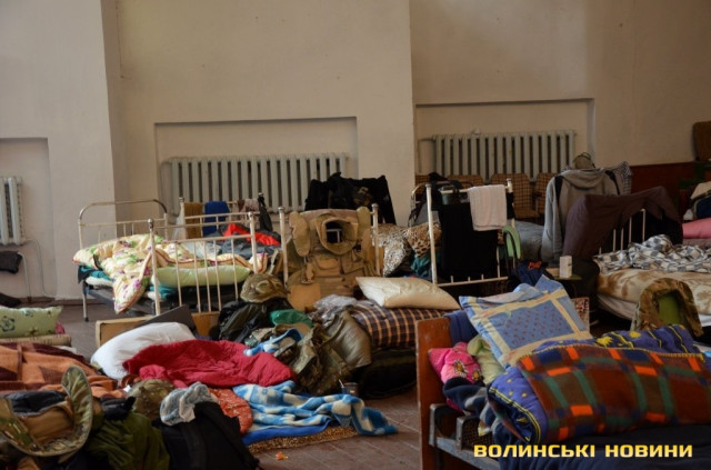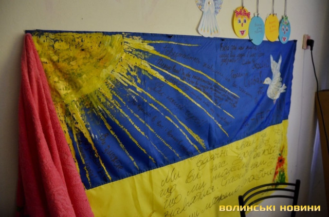 В приміщенні, де ночують бійці, поряд із прапором України – великий прапор Волині. Бійці з нашого регіону у цей час перебували у селищі Піски під обстрілом сепаратистів.
