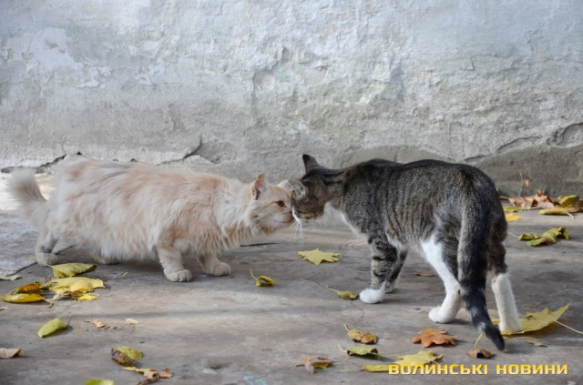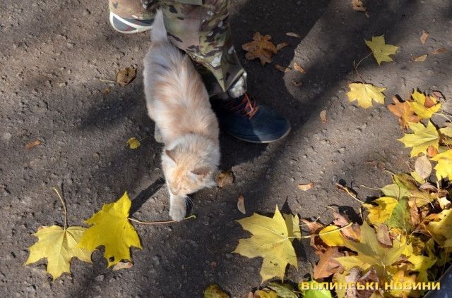 Територією бази гуляють евакуйовані із зони бойових дій кішки, які, як розповідають, раніше мешкали у будинку провідника Правого сектора Дмитра Яроша у Пісках.