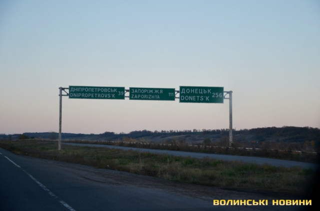 Після мирних міст Заходу України та Києва на власні очі побачити, що державі доводиться давати відсіч агресору, можна вже на Полтавщині, де минаємо перші блокпости. Дніпропетровськ справляє дивне враження – вже на в’їзді у місто стикаємося із поєднанням непоєднуваного – розфарбованим у червоно-чорних кольорах орденом Леніна. Назва міста - синьо-жовта. Саме тут вперше доводиться пройти перевірку на блокпості. Наліпку ПТН ПНХ з номерів мікроавтобуса змушують зняти. Як пояснили правоохоронці, такими наліпками часто заклеюють номери злочинці, щоб видати себе за учасників АТО.