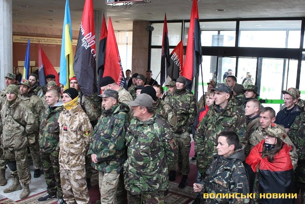 "28 квітня, Збройні сили України, зокрема 25-та і 95-та бригада, оточили нашу базу із вимогою здати зброю. Тож, ми хочемо почути позицію й волинських високопосадовців стосовно дій вищих ешелонів влади», - звернувся доброволець до Сергія Кудрявцева." - ідіоти, вони не розуміють, що у держслужбовців є таке поняття, як субординація, і зараз вони штовхають Кудрявцева на те, щоб він перевищував свої службові повноваження та давав оцінку діям та рішенням Президента України. І після цього хтось попробуйте скажіть мені, що правосеки не займаються знищенням держави?