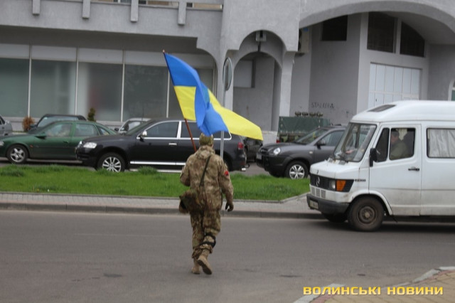 цікаво а пропорм Волині устим себе обмотав щоб холодно небуло. прапор навіть не вицвів на сонці і від донецьких вітрів.