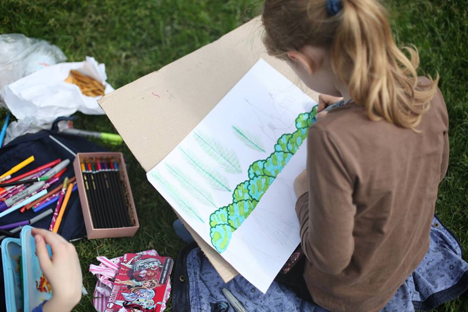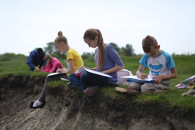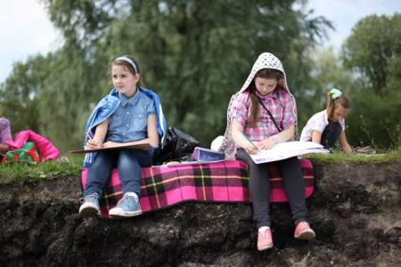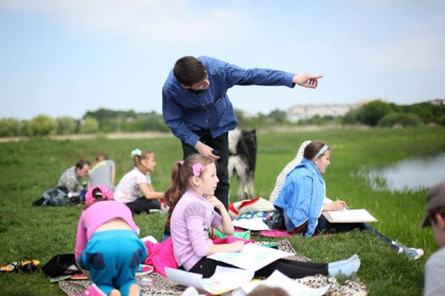 Керівники студії Богдан Осіюк та Галина Палазнік часто запроваджують під час занять цікаві, активні форми для розвитку творчості у дітей, які дають можливість пізнати себе і світ навколо. Саме така мета була в цьому творчому поході на мальовничі берега річки. Діти вчилися малювати трави, квіти, корчі, стовбури і крони дерев, хмари в їх природному стані.